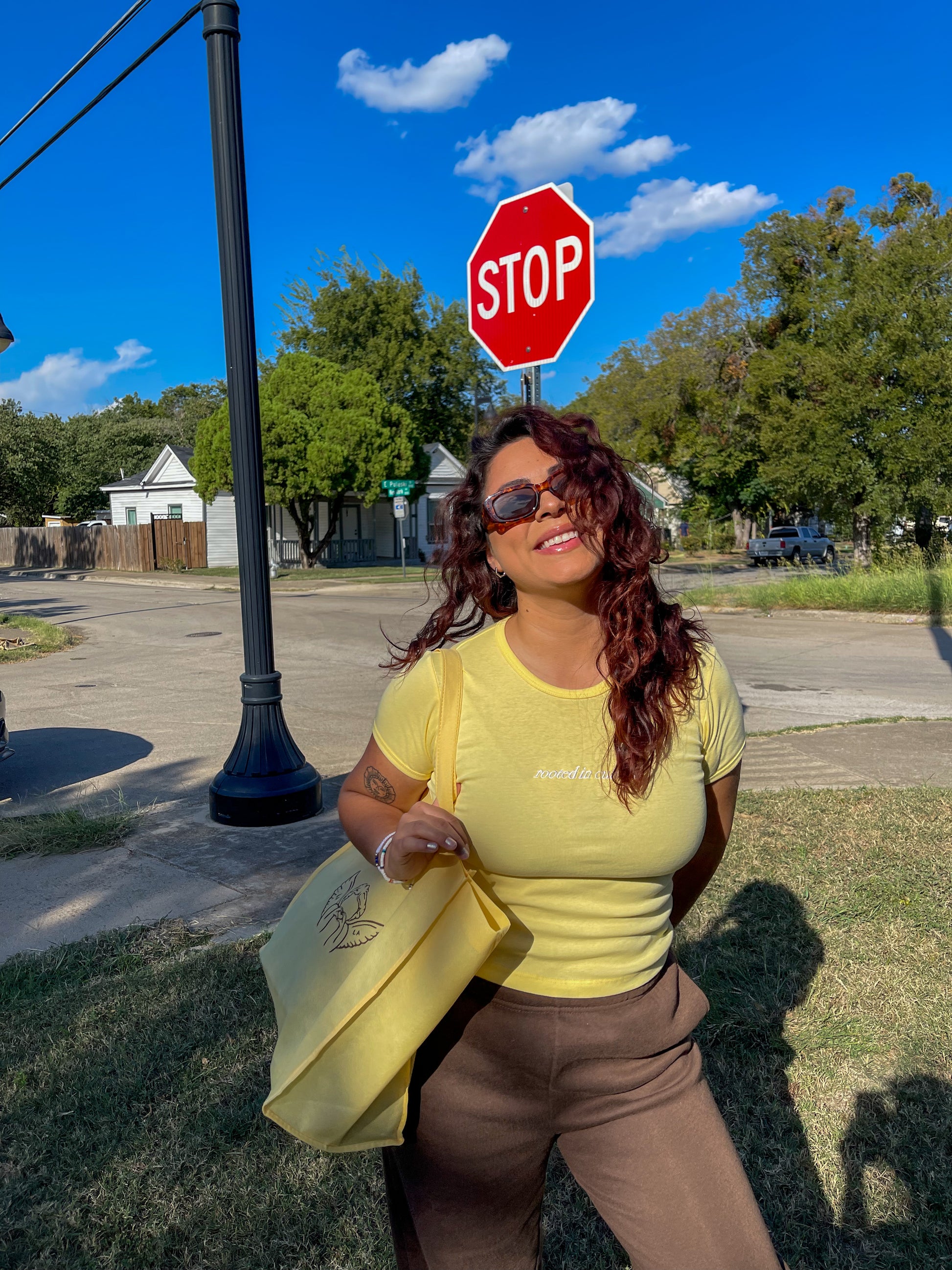 'Rooted In Cultura' Embroidered Yellow Baby Rib Shirt